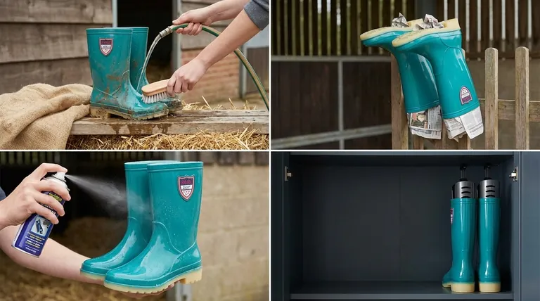 To care for Wellington boots, you must regularly clean them with water, allow them to air dry completely away from direct heat sources, condition the rubber with a silicone-based spray, and store them in a cool, dark, and ventilated area. This simple routine prevents the natural rubber from drying out, cracking, and losing its protective qualities.