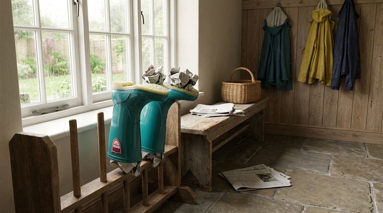 - For routine dampness after a rainy day: Stuff the boots with newspaper and place them upside-down in a well-ventilated room or a covered porch overnight.