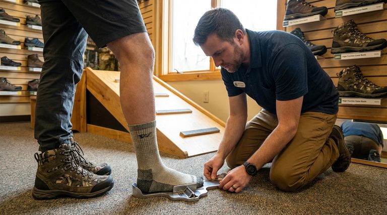 An experienced fitter at an outdoor specialty store will use a Brannock device to measure your foot's length, width, and arch length. This provides a precise starting point that is far more reliable than your standard shoe size, which can vary between brands.